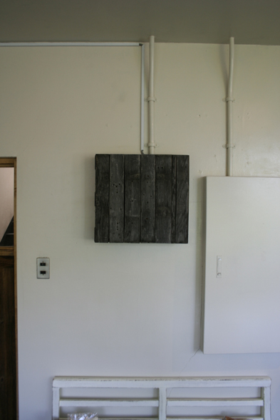 ブレーカーとかも見えるとかっこ悪いんで、古い板でてきとうに作り隠す。