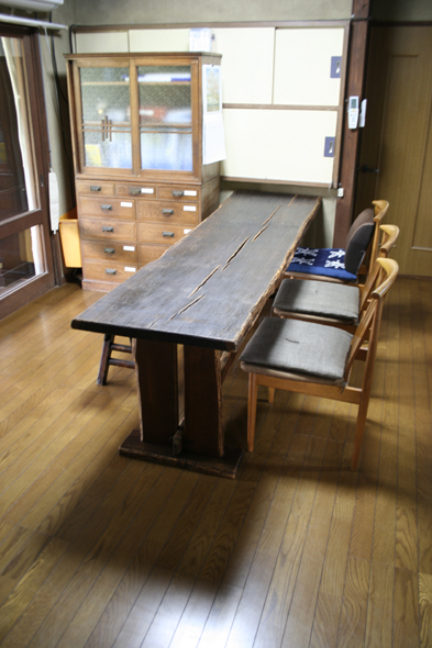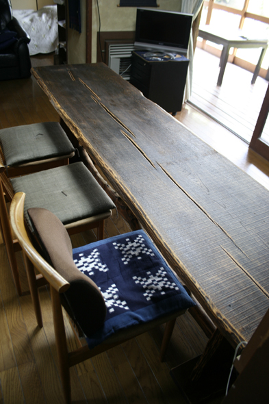 一枚板で、真ん中の割れてる部分も活かして作ってる。