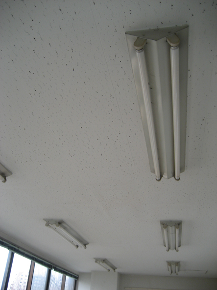 天井にもボードを貼り、事務所っぽい天井を隠す。