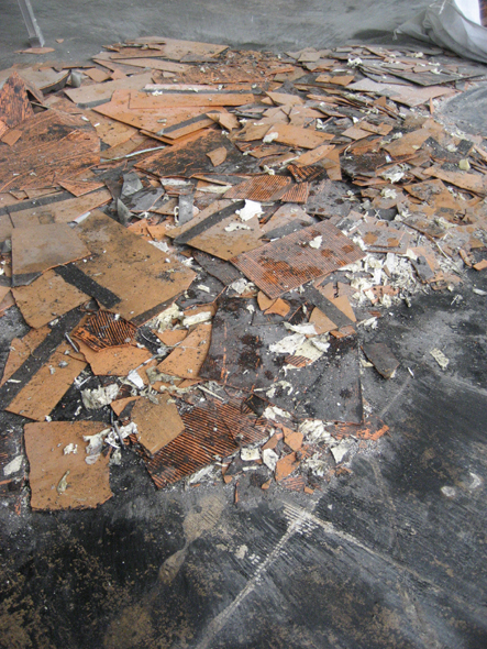 その下にあるプラスチックみたいなタイルを剥がす。