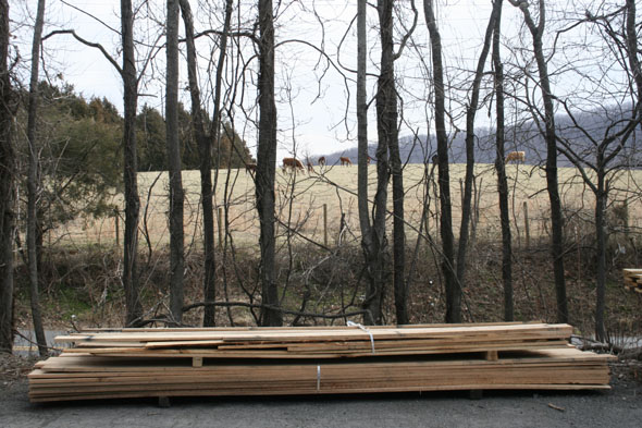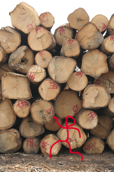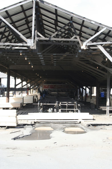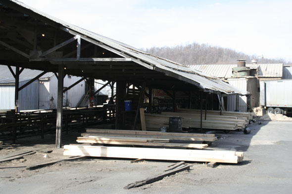 工場を離れ、裏へまわって材木置き場へ行ってみたら。