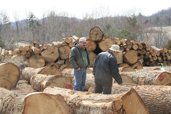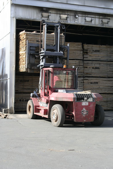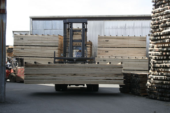 この3つの写真は、丸太を板にカットしたものをランク分けするところ。