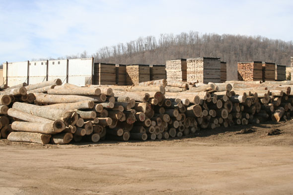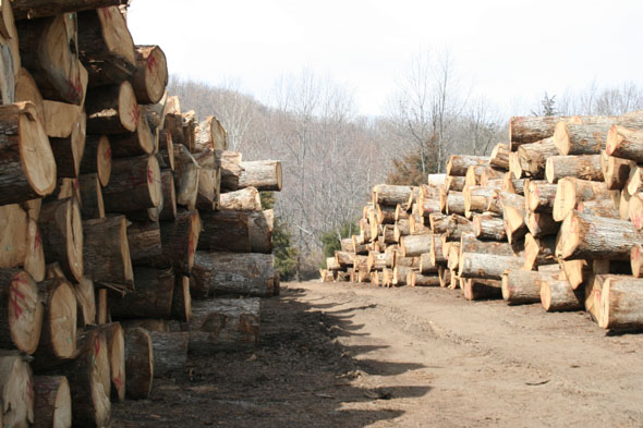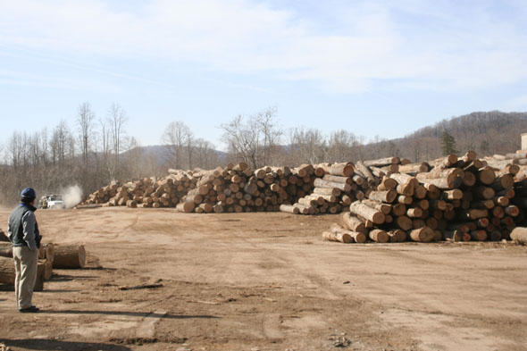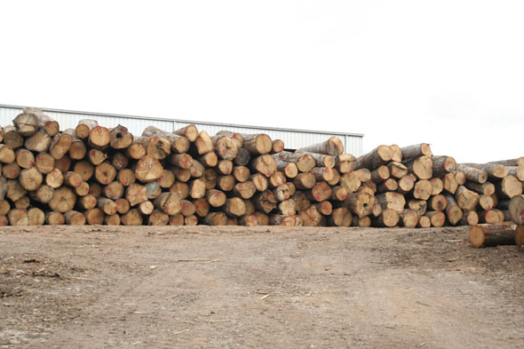 ここも丸太を山積みしてるんだけど、規模が違う。