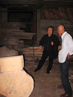 以前ブログでも書いた桜の丸太(中が空洞)をどう使おうか話し込んでるとこ。